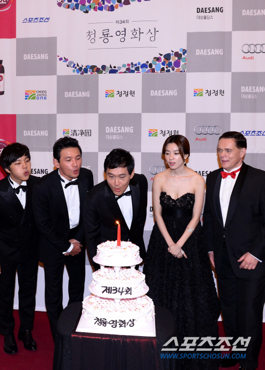 22일 서울 경희대학교 평화의전당에서 제34회 청룡영화상 시상식이 열렸다. 시상식을 마치고 수상자들이 케익 커팅을 하고 있다. 회기동=최문영 기자 deer@sportschosun.com