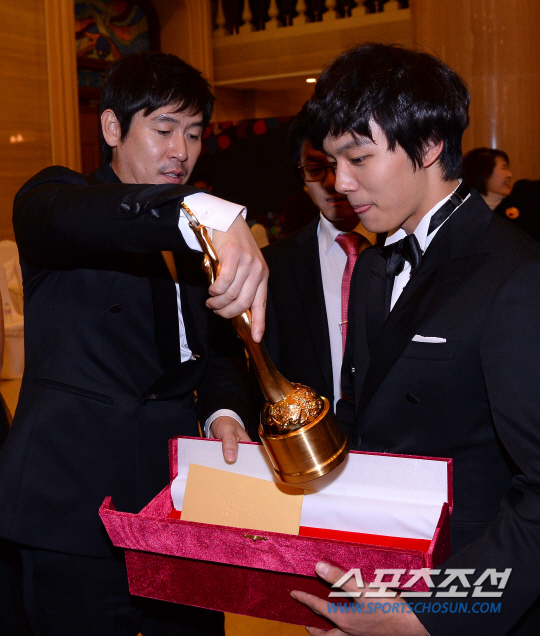 신인남우상을 받은 여진구는 '대세'답게 젠틀한 모습을 보였다. 사실 여진구는 tvN '감자별 2013' 촬영장으로 복귀해야 했던 상황. 그러나 끝까지 자리를 지키며 선배들의 수상을 축하했다. 트로피는 물론 "이정재 선배님이 주셨다"며 자신의 이름이 적힌 수상 봉투까지 야무지게 챙겨든 모습은 순수한 고등학생의 모습 그 자체였다. 특히 설경구는 그런 여진구의 트로피를 세심하게 챙겨줘 훈훈함을 더했다.