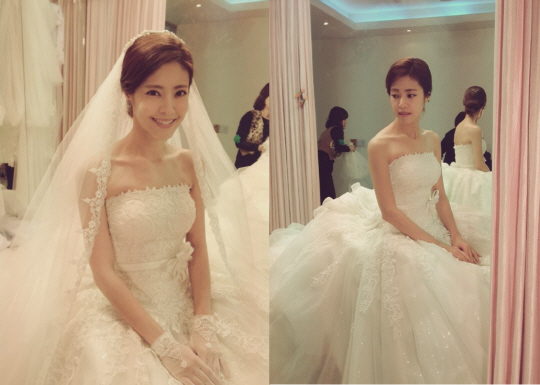 배우 이윤지의 웨딩드레스 사진이 공개됐다.