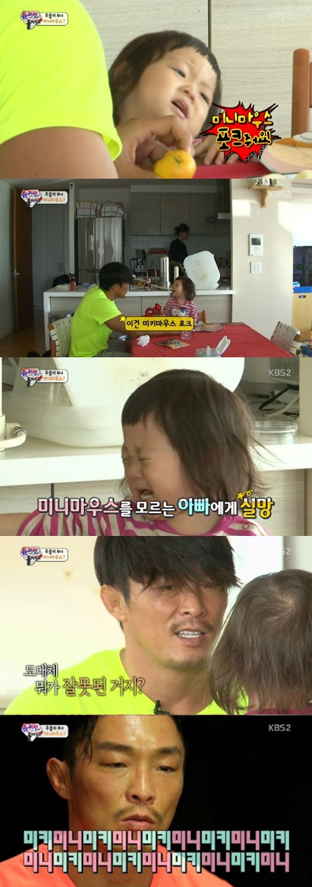 하지만 추성훈은 추사랑이 왜 우는지 영문을 몰랐고 "미니마우스와 미키마우스 정확하게 모르겠다. 얼마나 유명한 건데 난 진짜 바보다"라고 말해 웃음을 자아냈다.