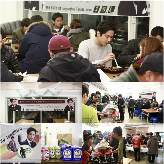KBS 월화드라마 '미래의 선택'에 출연 중인 정용화와 정용화의 팬클럽 연합이 '미래의 선택' 팀을 위해 밥차 선물을 했다.