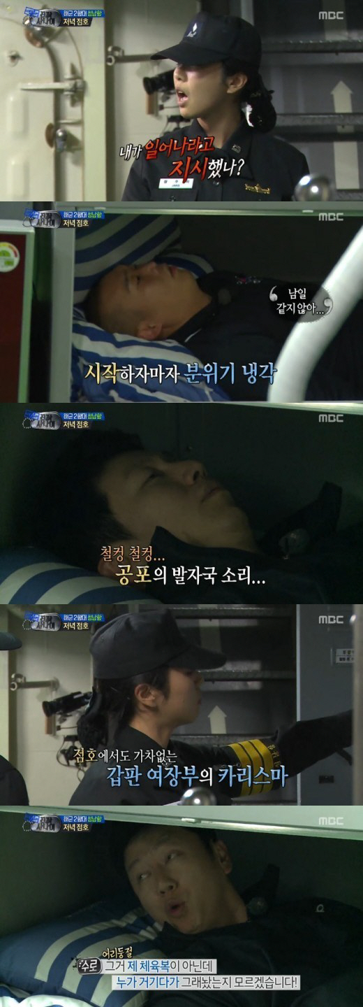 이날 김수로, 류수영, 손진영은 성남함 승조원이 됐고 서경석, 장혁, 샘 해밍턴, 박형식은 고속정 참수리호에 탑승했다. 하지만 성남함 승조원들은 출항 30분 전 우왕좌왕했고, 결국 5분이나 늦게 집합하고 말았다.