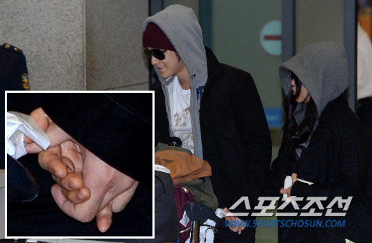 공식 연인 문근영과 김범 커플이 손을 꼭 잡고 귀국했다.