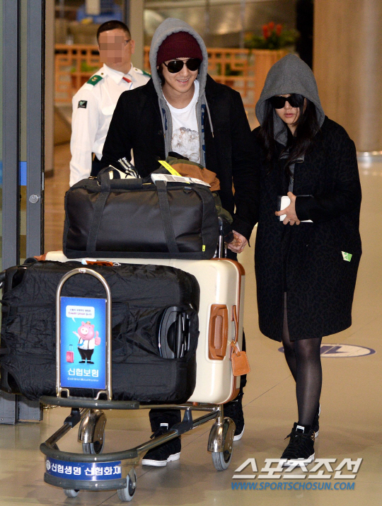 두 사람은 회색 후드 티와 검은 색 외투, 운동화까지 맞춘 풋풋한 커플룩을 선보였다. 특히 김범은 연하이지만 여행 가방들을 실은 카트를 자신이 밀고, 문근영을 에스코트하는 남자다운 모습으로 이목을 끌었다.