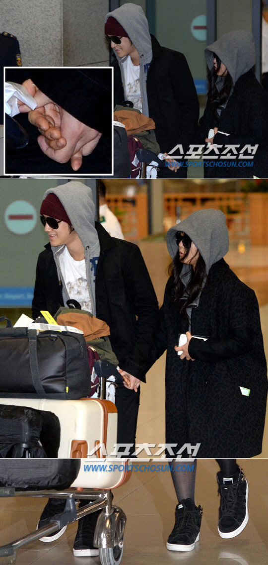 앞서 이들의 입국소식을 접한 수많은 취재진들이 인천공항으로 모이며 인산인해를 이루었다. 그러나 게이트 앞에서 기다리는 취채진 앞에서도 당황하는 기색 없이 미소를 지어보이는 두 사람은 손을 꼭 잡은 채 당당한 모습으로 등장했다.