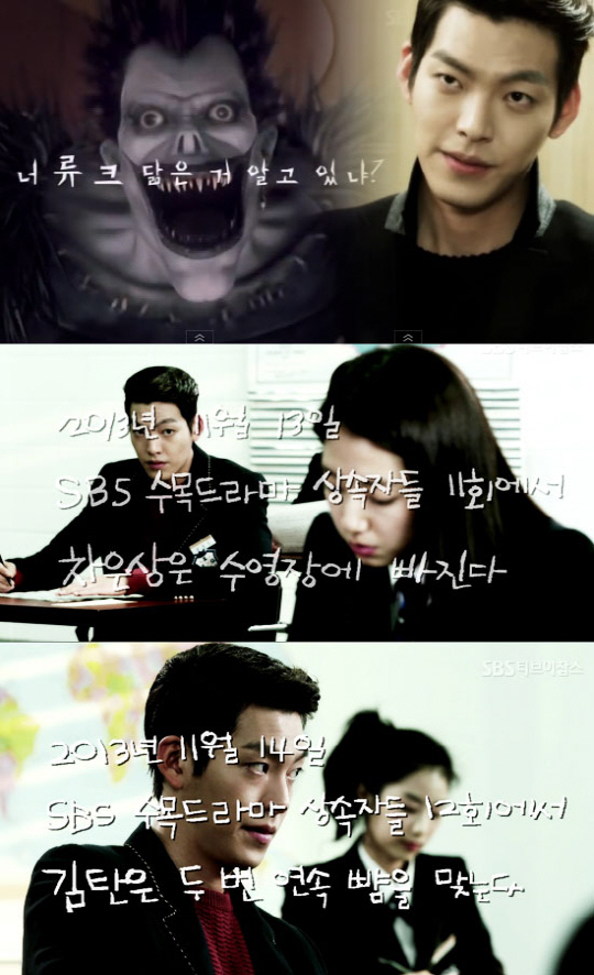 25일 SBS 티브이잡스는 SBS 수목드라마 '왕관을 쓰려는 자, 그 무게를 견뎌라-상속자들'과 영화 '데스노트'를 합성해 만든 UCC 콘텐츠 '상속자들 데스노트 번전'을 게재했다.