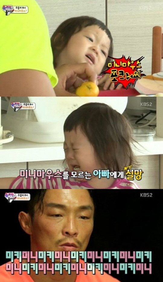 한편 미니마우스 포크 때문에 눈물을 보였던 추사랑은 추성훈이 건넨 바나나에 금세 화를 풀고는 애교가득한 미소를 지어보여 '딸바보' 추성훈을 안심시켰다. <스포츠조선닷컴>