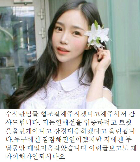 김도연은 26일 자신의 SNS에 "수사관님들 협조 잘 해주시겠다고 해주셔서 감사드립니다. 저는 열애설을 입증하려고 트윗을 올린게 아니고 강경대응하겠다고 올린겁니다"라며 "누구에겐 잠잠해진 일이겠지만 저에겐 두달 동안 매일 지옥같았습니다. 이런 글보고도 제가 이해가안되시나요"라고 글을 올리며 인피니트 엘의 팬이 쓴 글을 캡처한 이미지를 게재했다.