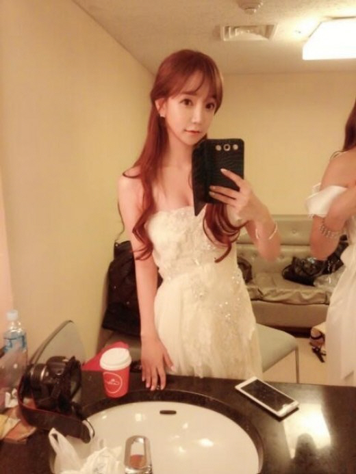 김도연은 화이트 튜브톱 드레스를 입고 대기실 거울을 바라보며 볼륨 몸매를 드러낸 셀카를 찍어 올리기도 했다.