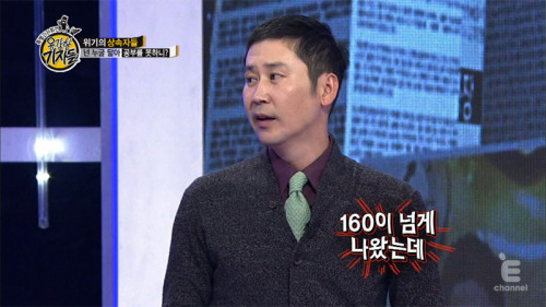 이날 토크를 진행하던 중 신동엽은 "나도 중학생 때 아이큐 160이 나왔었다"며 깜짝 고백했다. 그러나 뒤이어 "1년에 아이큐가 10씩 떨어지고 있다"고 밝혀 웃음을 자아냈다.
