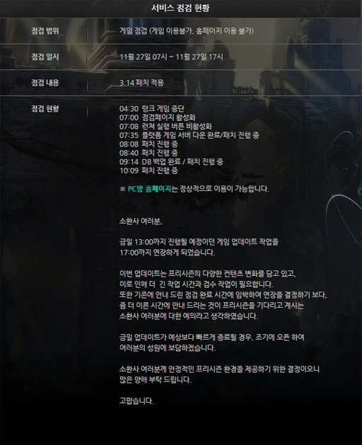 이에 4시30분부터 랭크 게임이 중단됐고 7시에 점검페이지로 활성화됐다.