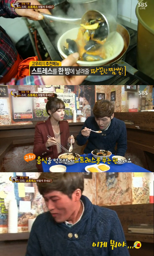 이날 고우리는 "오늘 저와 함께 하시면 스트레스가 100% 다 풀리실거다"고 말해 기대감을 높였다. 이에 고우리와 김일중 아나운서는 따끈한 짬뽕집으로 향했다.