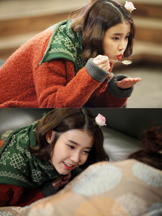 최근 공개된 사진엔 독고마테(장근석)를 향한 아낌 없는 사랑을 표현하고 있는 김보통(아이유)의 모습이 담겨 있다. 독고마테가 감기에 걸렸다는 소식을 듣고 그에게 달려간 김보통이 정성이 담긴 죽을 준비한 것. 죽을 숟가락에 담아 '호' 불고 있는 아이유는 사랑스러운 모습으로 시선을 사로잡았다.