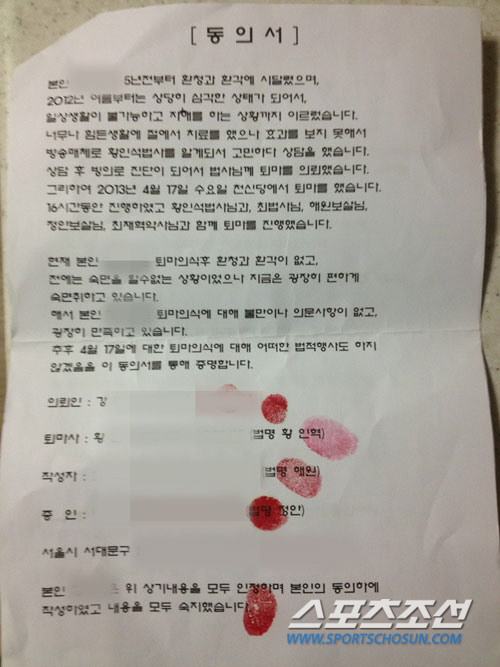 이에 황인혁은 적극 반박했다. 황인혁은 "오히려 A씨에게 내가 먼저 내용증명을 보냈다. 5월 초에 A씨는 나에게 일주일간 퇴마 치료를 받았고, 모든 증세가 없어질때까지 퇴마 치료를 하는 조건으로 총 3천만원을 청구했다. 하지만 이중 1900만원만 받았다. 나머지는 본인이 직접 곧 값겠다는 차용증을 썼다"며 "잔금을 받으려 연락하면 전화를 안받고 이리저리 문자로만 '주겠다'고 답하더니 고소를 한 모양이다. 난 피소된 사실도 몰랐다. 고소장도 받지 못했고, 경찰 연락도 받지 못했다. 오히려 5월 중순께 내용증명을 먼저 보낸 상태다"고 말했다.