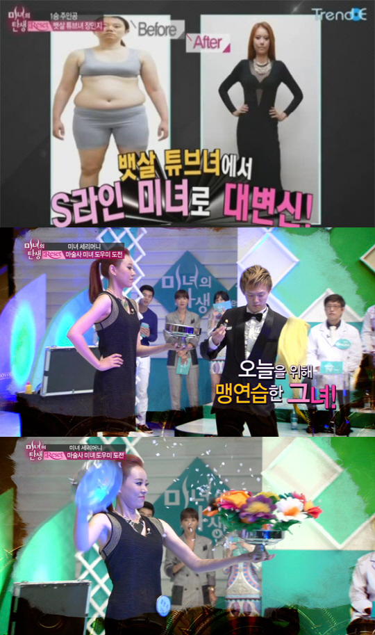 28일 방송된 TrendE(트렌디)채널 메이크오버쇼 '미녀의 탄생 : 리셋'에서는 심각한 복부 비만에 시달렸던 장민지 씨가 8등신 미녀 마술사로 변신하는 모습이 그려져 눈길을 모았다.