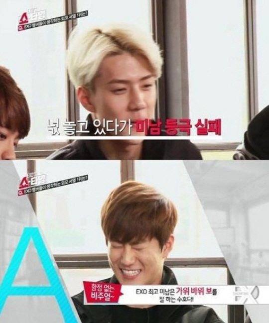 이에 엑소 외모 서열 공동 1위를 차지한 수호와 세훈은 '가위바위보 게임'을 통해 최고의 미남을 가리기로 했다.