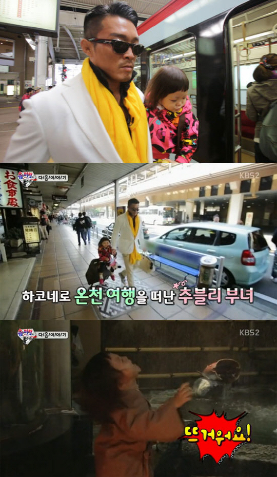 현재 KBS 2TV '해피선데이-슈퍼맨이 돌아왔다'에 출연하고 있는 추성훈 부녀는 오는 1일 방송에서 일본 온천으로 유명한 관광지인 하코네로 여행을 떠나는 모습이 그려진다.