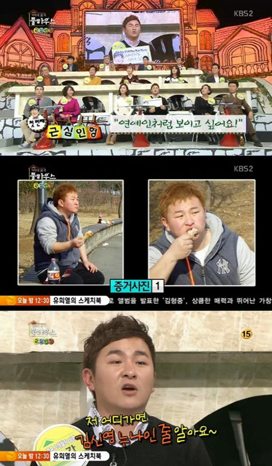 이에 MC 이경규는 과거 허각이 홀로 앉아 치킨을 먹고 있는 사진을 공개했다. 허각은 "데뷔 전 팬들과 체육대회 대회를 했다. 안 꾸며진 상태에서 치킨이랑 피자를 시켜먹다가 찍혔다"라고 사진에 대해 설명했다.