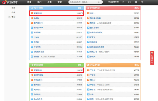 영화와 드라마 관련 검색어에서도 '청담동 111'은 13만건을 넘은 압도적 검색량으로 독보적 1위를 이어갔다. 같은 차트에서 2위 '응답하라 1994', 4위 '상속자들', 11위 '예쁜 남자' 등이 차지하며 한국 드라마들의 중국 내 인기를 입증했다.
