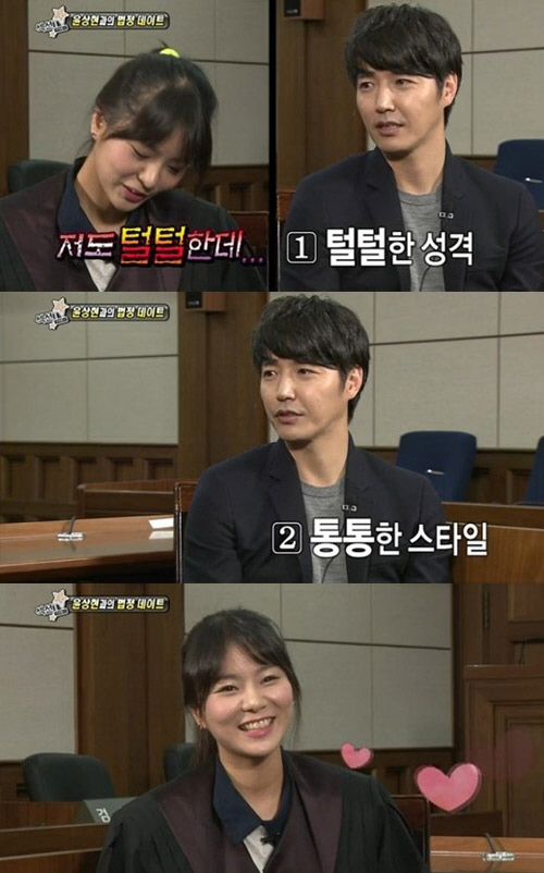 이날 맹승지는 "당신은 죄를 지었다. 내 마음을 훔쳐간 죄"라며 윤상현을 향해 깜찍한 애교를 보였다. 이어 맹승지는 윤상현에게 이상형을 물었고, 윤상현은 "털털한 성격에 통통했으면 좋겠다"고 답했다.