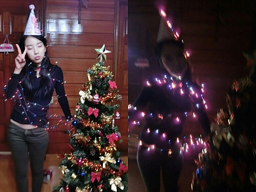 공개된 사진 속 지숙은 고깔모자에 트리 장식용 전구를 몸에 감고 인간 트리로 완벽 변신한 모습. 특히 불을 끄고 전구에 불이 들어온 모습도 공개해 눈길을 끈다.