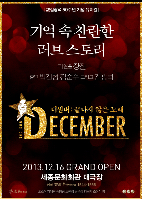'디셈버'는 고 김광석 50주년 기념 뮤지컬로, 김광석의 자작곡 가창곡 미발표곡을 모두 만나볼 수 있는 주크박스 뮤지컬이다. 16일 세종문화회관 대극장에서 개막한다.
