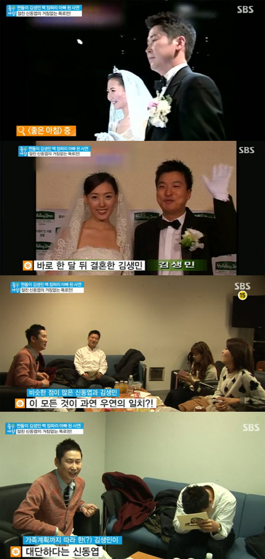 실제로 김생민은 신동엽이 결혼식을 올린 지 1달 뒤에 결혼, 2007년에 첫 아이를 낳았다. 또 두 사람은 각각 2010년과 2011년 비슷한 시기에 둘째 아들을 출산했다.