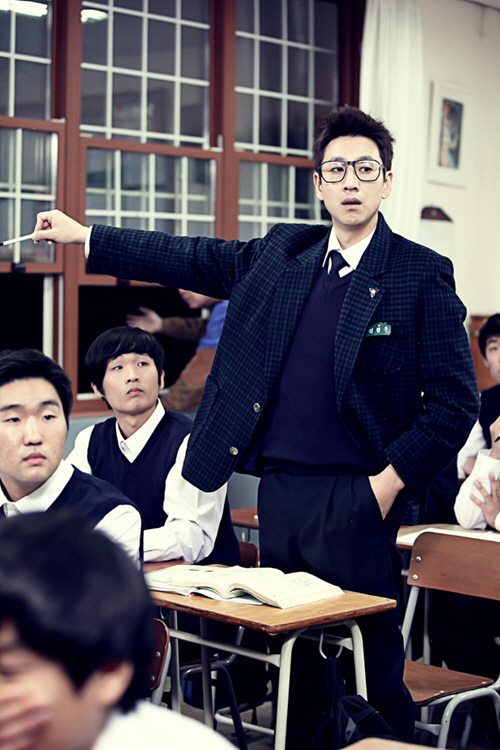 평소 교복을 입고 평소 카리스마 넘치는 모습과는 다른 반전매력을 선사한 이선균은 검은뿔태 안경을 쓰고 교복을 완벽히 소화하고 있어 많은 이들의 시선을 끌었다.