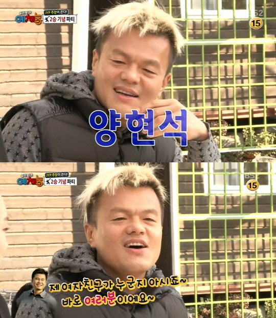 그러나 거듭되는 출연자들의 요청에 박진영은 "양현석 형이 '여러분 제 여자 친구가 누군지 아시죠? 바로 여러분입니다'라고 하는데 엄청 어이없고 얄미웠다"고 폭로해 현장을 폭소케 했다.