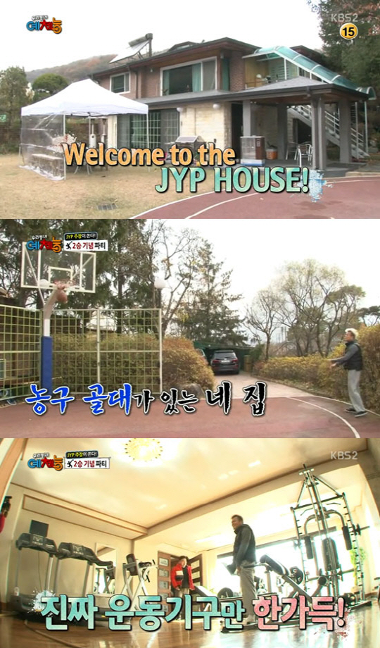 이 과정에서 박진영의 넓은 집이 공개됐다. 박진영의 집은 농구대가 설치된 대형 정원에 2층으로 저택이 구성돼 있어 시선을 모았다.