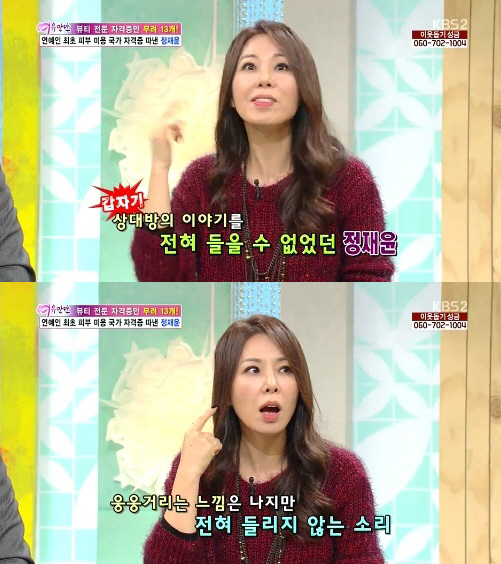 특히 이날 정재윤은 바쁜 방송활동 시간을 쪼개 뷰티전문가 자격증을 따던 중, 몸에 무리가가 결국 돌발성 난청을 앓았다고 고백해 눈길을 끌었다.
