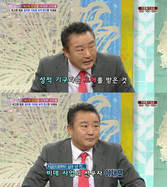 그는 정치부 기자에 앞서 "비데사업의 선구자"라고 밝혔다. 이재포는 "10여 년 전 비데사업에 도전한 적이 있다"며 "모 장관님을 찾아가 비데의 수익성에 대해 설명했다. 그러나 사람들이 성적인 기구라 오해해 결국 단 한 대도 팔지 못했다"고 털어놨다.