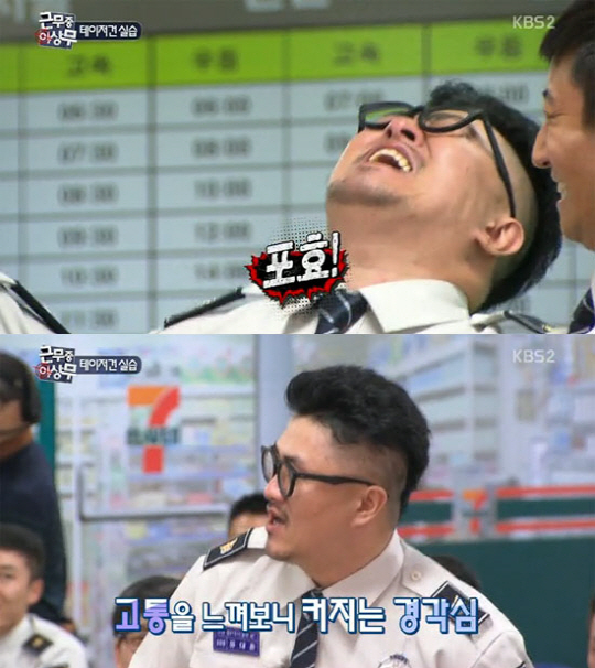'근무 중 이상무' 가수 데프콘이 테이저건(전기총) 실습에 깨달음을 얻어 웃음을 자아냈다.