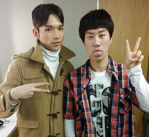 사진 속 산이와 팬텀의 산체스는 tvN '응답하라 1994'의 빙그레와 삼천포로 변신한 모습. 빙그레의 바가지 머리를 따라 한 산이는 한 손으로 브이(V)를 그리며 포즈를 취했다.