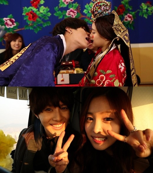 샤이니 멤버 태민과 에이핑크 멤버 손나은 커플이 아슬아슬한 대추키스를 나눴다.