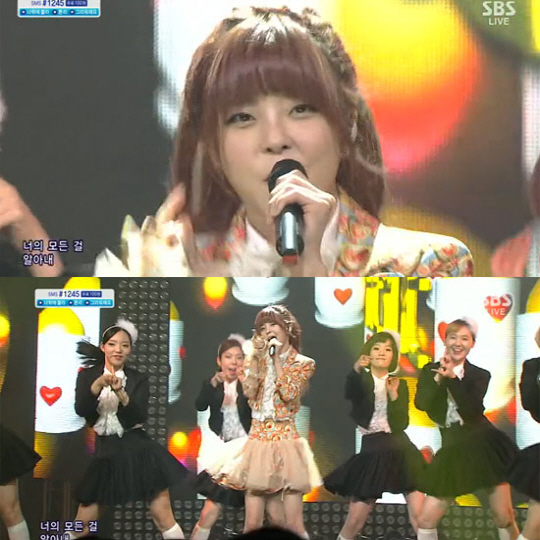 특히 혜이니는 발랄한 느낌이 물씬 풍기는 오렌지색 계열의 의상과 독특한 목소리로 깜찍한 매력을 발산, 남성 팬들의 마음을 흔들리게 했다.