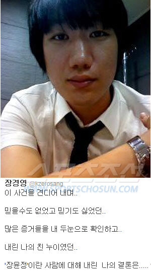 장윤정 동생 장경영은 그 글에서 "이 사건을 견디어 내며 믿을수도 없었고 믿기도 싫었던.. 많은 증거들을 내 두눈으로 확인하고.. 내린 나의 친 누이였던.. '장윤정'이란 사람에 대해 내린 나의 결론은.. '영악하다'이다"라면서 "'돈'에 양심을 팔았던 친인척들과 '공모자'들은..'안쓰럽다' 이다. 지켜 볼 생각이다. 그리고 '결정' 할 것이다. 용서'를 구하는것도 '용기'라고 생각한다. 지켜 볼 생각이다. 그리고 '결정' 할 것이다"라는 의미심장한 글을 올려 또 한번 충격을 주고 있다.