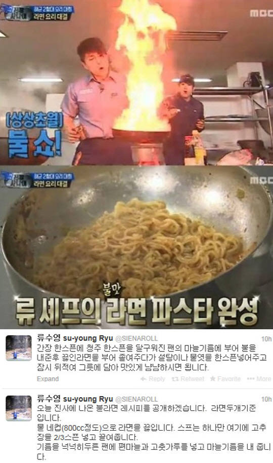 한편 류수영 라면 파스타를 접한 네티즌들은 "류수영 라면 파스타, 레시피 공개 됐으니 한번 도전해야지", "류수영 라면 파스타, 만드는 법 의외로 간단", "류수영 라면 파스타, 짜파구리에 이어 새로운 메뉴", "류수영 라면 파스타, 어떻게 개발 했지?"등의 반응을 보이고 있다. <스포츠조선닷컴>