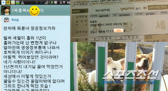 가수 장윤정의 모친 육흥복 씨가 올린 것으로 추정되는 욕설 편지가 공개돼 충격을 주고 있는 가운데, 해당 글에 재산세 사진과 개 사진을 함께 올려 네티즌들의 궁금증을 자아내고 있다.