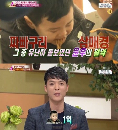 MC들은 "윤후는 6개월 광고에 억대 출연료를 받는다. 라면 광고는 윤후가 출연한 이후, 매출 30% 증가한 것으로 알려졌다"고 밝혀 놀라움을 안겼다.