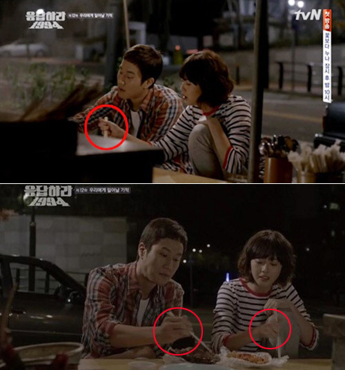 이에 네티즌들은 "응답하라1994 젓가락질 장면까지 화제구나", "응답하라1994 젓가락질, 복선을 깐 줄 알았다", "응답하라1994 젓가락질, 정우 고아라 젓가락질이 똑같다니 신기하다", "응답하라1994 젓가락질까지 관심 폭발" 등의 다양한 반응을 보였다. <스포츠조선닷컴>