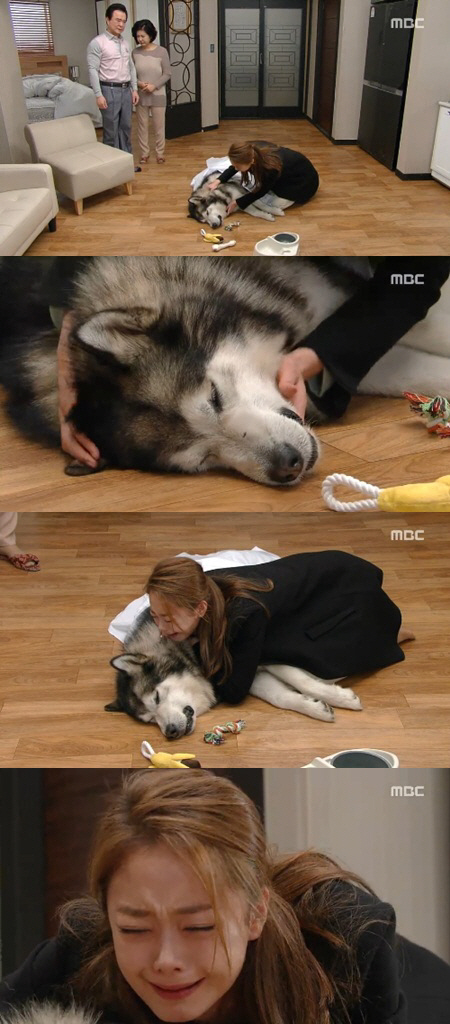 지난 9일 방송된 MBC 일일드라마 '오로라 공주'에서는 오로라(전소민 분)의 애견인 떡대가 죽음으로 하차하는 장면이 전파를 탔다.