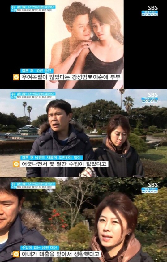 이날 강성범은 아내와 두 자녀를 데리고 제주도로 떠났다. 강성범은 아내와 결혼 후 몇 달간 일이 없었다고 밝히며 "당시 수입이 하나도 없었다. 그때 아내가 대출을 받아다 줘 그 돈으로 생활했다"고 말했다.