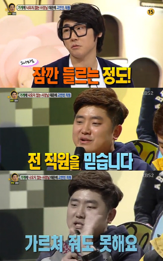 사연 말미에 주인공은 "직원을 한 명 뽑던지 사장님이 출근해달라"고 부탁, 사장은 "앞으로는 가게에 잘 출근하겠다"고 약속하며 훈훈하게 마무리 지었다.