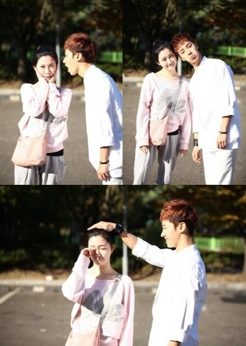 이기광은 입을 벌린 채 이다인을 향해 서 있자 이다인은 얼굴에 손바닥을 댄 일명 '꽃받침' 포즈를 선보였고, 또 두 사람은 얼굴을 맞댄 채 다정한 포즈를 연출했다.