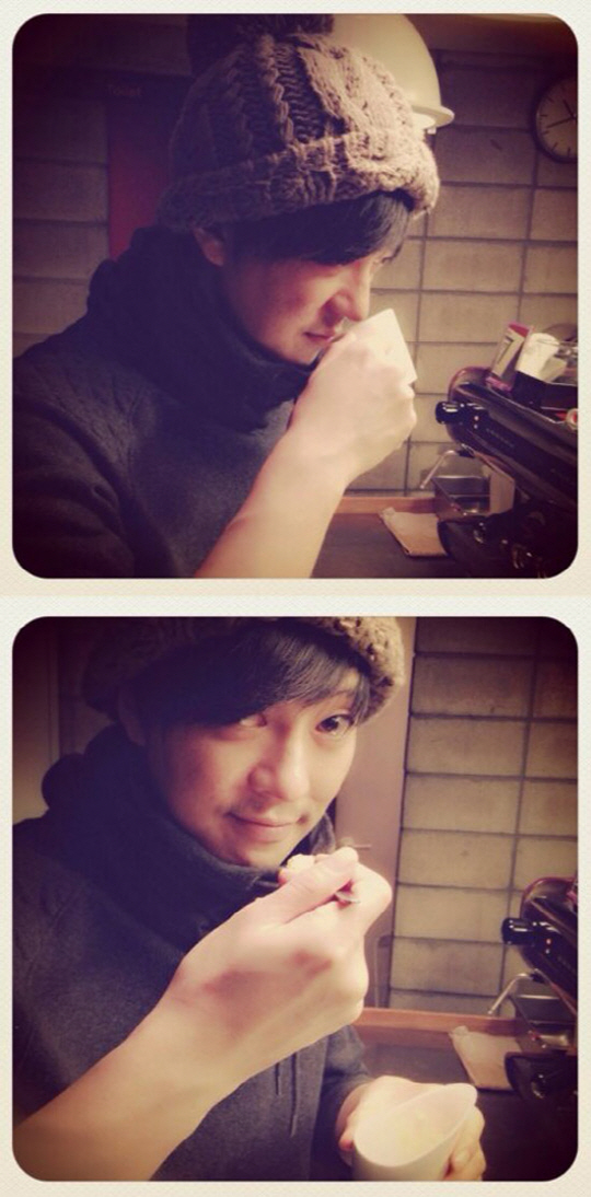 윤건은 11일 자신의 트위터에 "궁금하신 분들 계신 듯하여, 세포 사이사이, 뼈마디 찌든 스트레스가 풀리는 '카페로망' 초간단 레시피-에스프레소2샷, 레몬, 설탕"이라는 글과 함께 두 장의 사진을 게재했다.