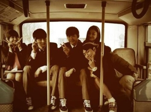 사진 속 서인국은 드라마 '응답하라 1997' 주연배우 에이핑크 정은지, 인피니트 호야, 신소율, 이시언과 버스 뒷좌석에 앉아 개구진 포즈를 취하고 있다.
