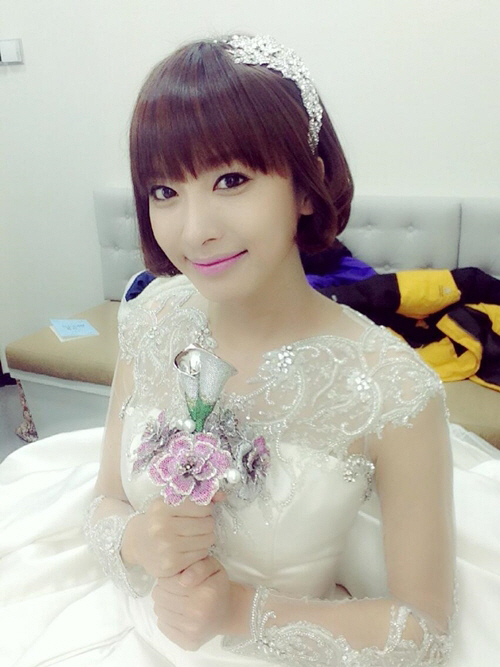 가수 겸 배우 박정아가 웨딩드레스 입은 모습을 공개했다.
