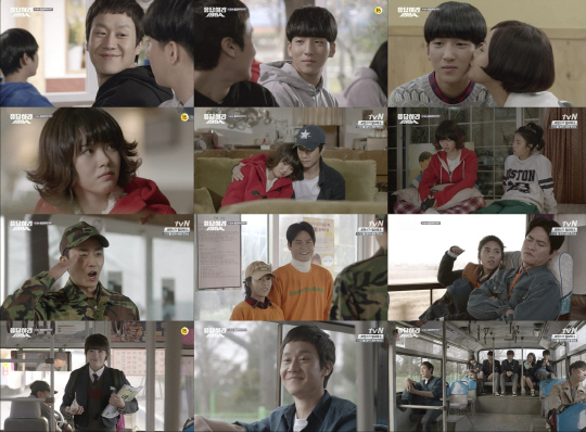 양양에 있는 군대에 해태(손호준)를 보러 가기 위해 면회를 종종 떠나는 사랑스러운 커플 삼천포(김성균 분)와 윤진의 아옹다옹하는 모습이 재미를 더했다. 면회장에서 윤진에게 관심을 보이는 군인들, 미모에 물이 올랐다며 조심하라고 충고하는 해태의 말에 다소 긴장한 듯한 삼천포의 모습이 그려진 것. 또 양양까지 온 김에 정동진에 들렀다 가자고 조르는 삼천포, 시간이 늦어지면 하룻밤을 묵을 생각을 하는 삼천포의 속셈을 알고 단칼에 자르는 윤진, 두 사람의 티격태격 거리는 모습도 여전했다.