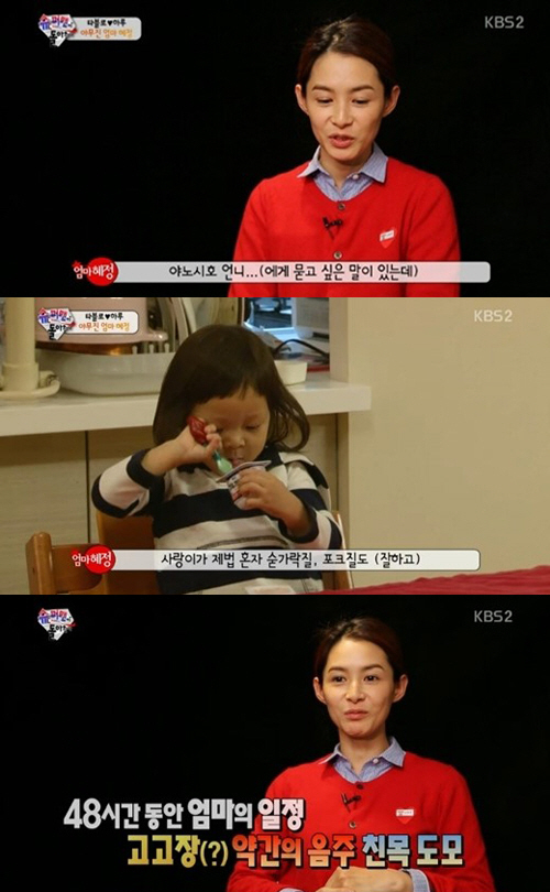 15일 방송된 KBS 2TV '해피선데이-슈퍼맨이 돌아왔다'에서 강혜정은 입이 짧은 딸 하루에 대한 걱정을 드러냈다.